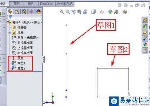 3、當上面兩個草圖都畫好之后,你要看下左側的零件下拉菜單中有沒有剛剛的兩個草圖,別搞錯了。