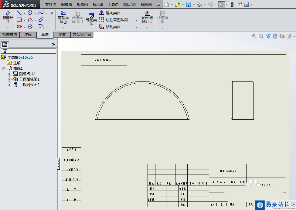 1、如下圖所示,打開事先保存好的SolidWorks工程圖,可以看到之后兩個視圖。