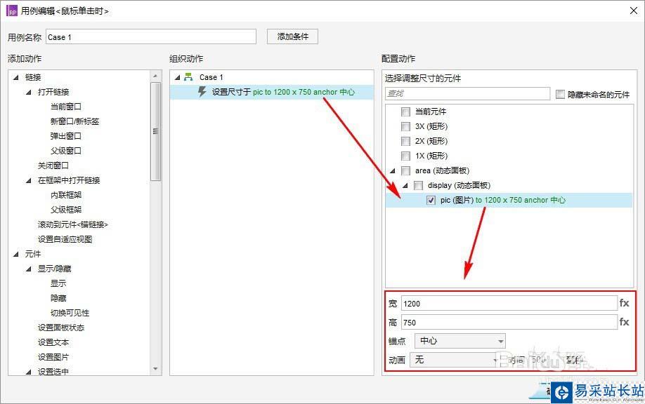 設置“圖片:pic”尺寸為1200*750其中,寬為1200,高位750;錨點:中心;動畫:無