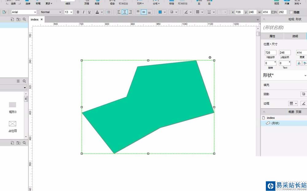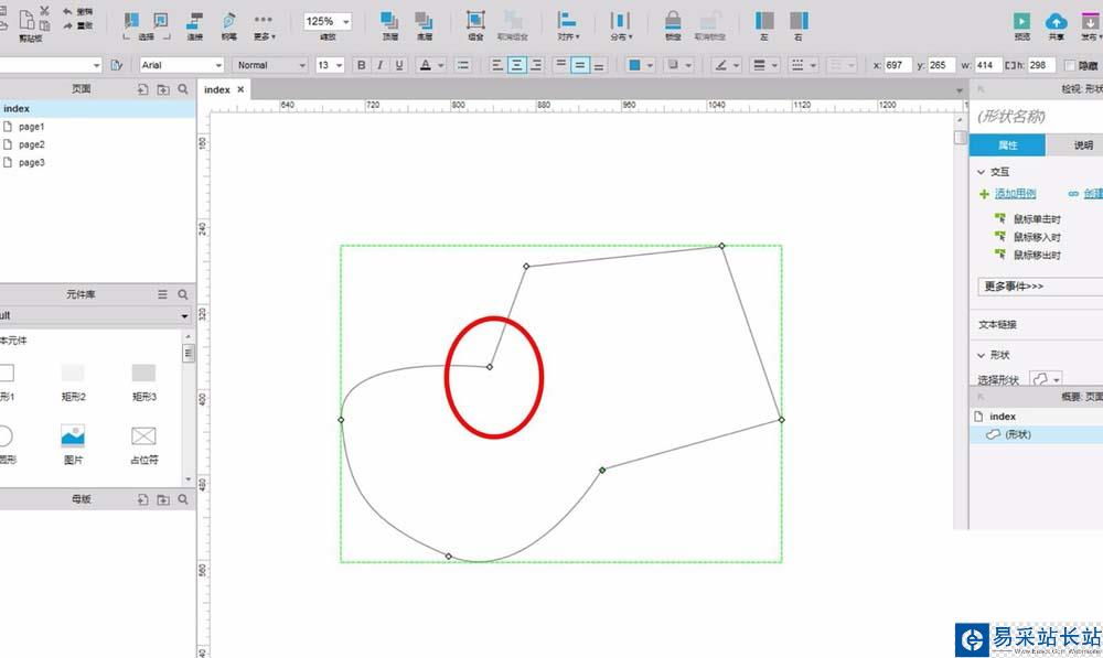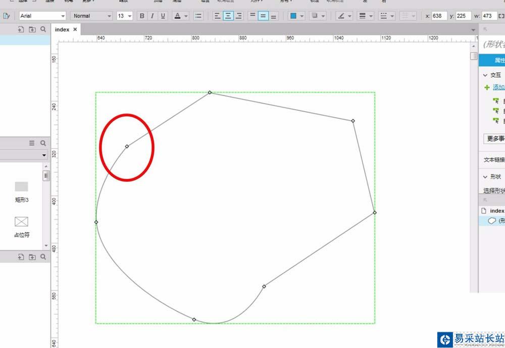 4、把鼠標(biāo)移動到起點(diǎn)位置,Axure軟件會自動捕捉起點(diǎn),只要點(diǎn)擊一下左鍵,即可得到一個封閉的圖形。