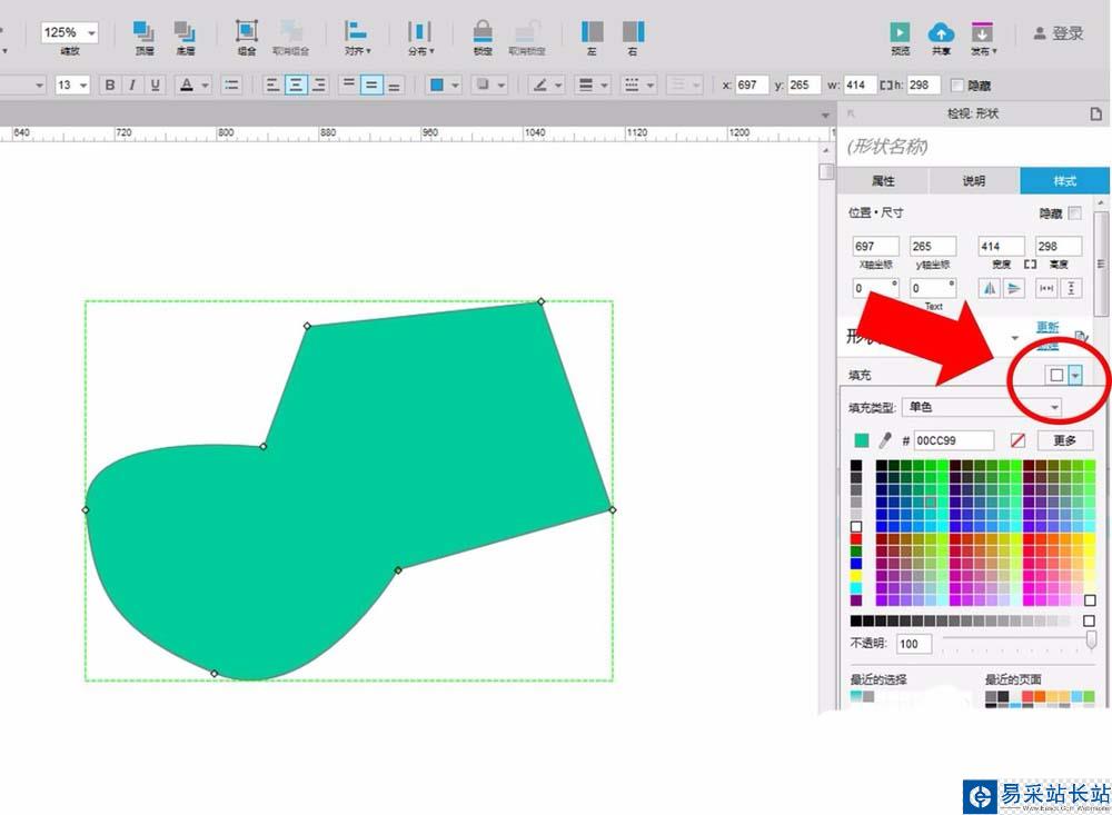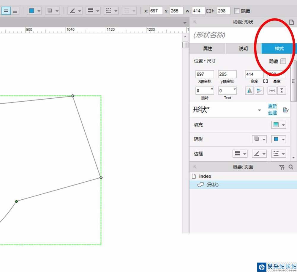 6、如果想要給圖形上色,那么就點(diǎn)擊右邊面板的“樣式”按鈕。