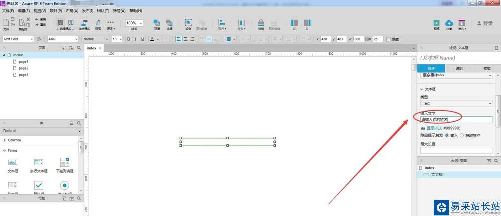 1、在元件屬性的文本提示文字中輸入“請(qǐng)輸入你的姓名”;