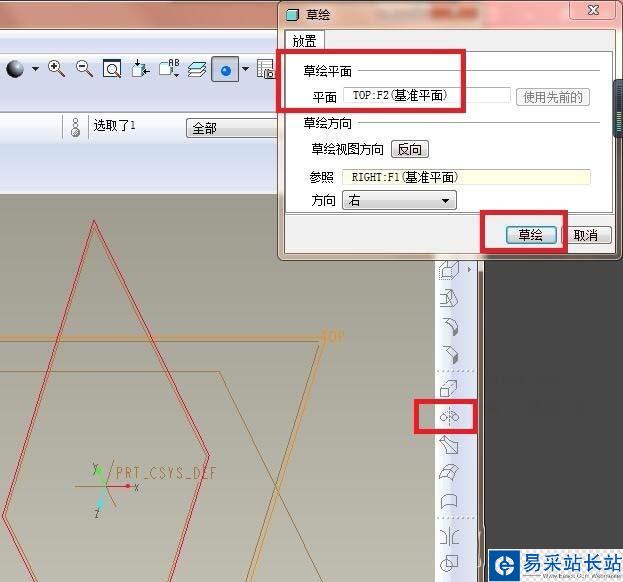 2、如下圖所示,執行【旋轉——位置——定義——TOP面——草繪】。