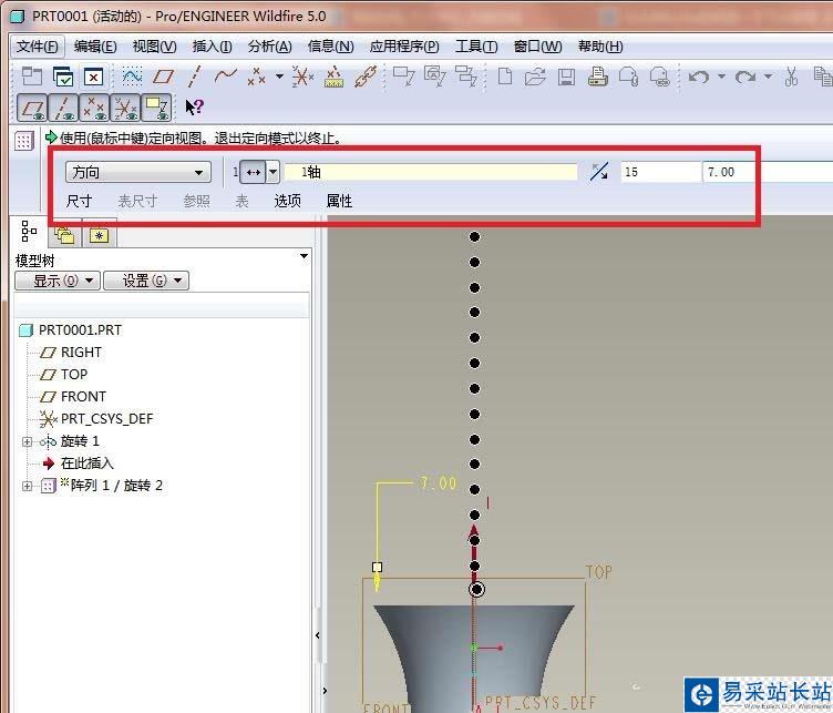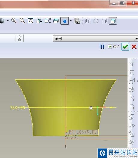 4、如下圖所示,退出草繪之后,只要點擊軟件右上角的√,就可以完成這個旋轉實體的創建了。