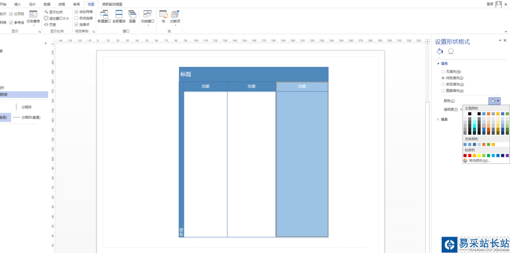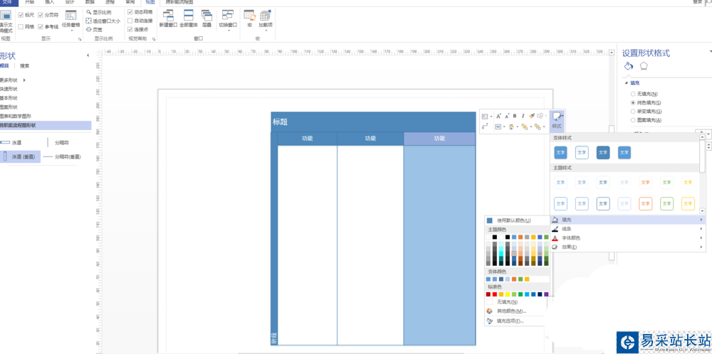 7、鼠標左鍵點擊功能塊,右鍵選擇“樣式、填充顏色”,改變功能塊顏色。
