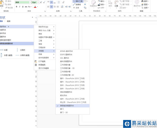 2、進頁面后,選擇跨職能流程圖形狀,如圖