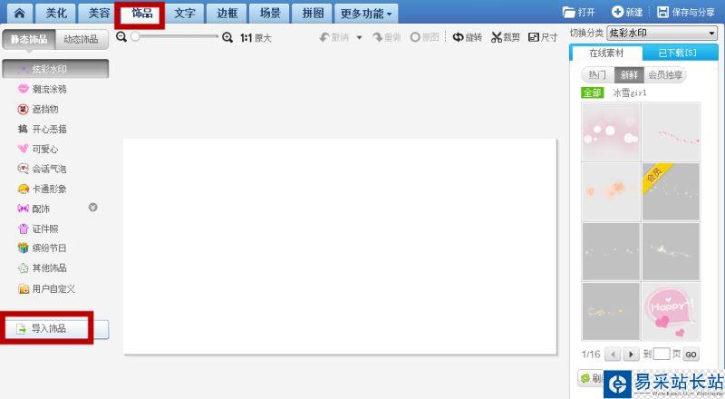 如圖,然后在菜單欄中點擊“飾品”,選擇“導入飾品”,