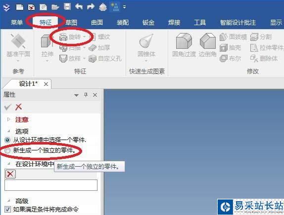 3)屬性欄中的選項,我們點擊“新生成一個獨立的零件。”