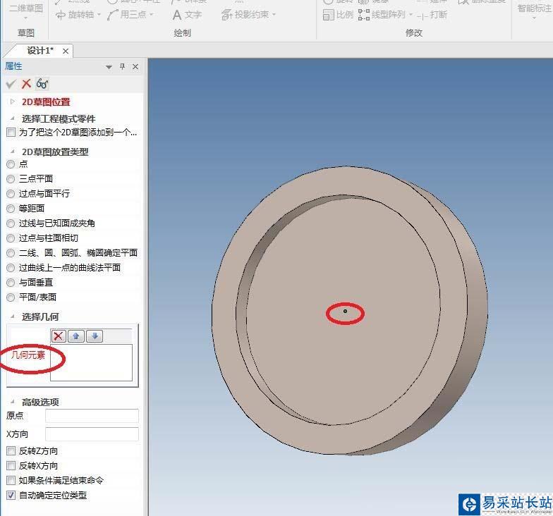 7、如下圖所示,幾何元素一欄,我們點擊實體中的那個面的中心點。