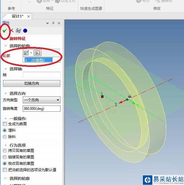 5、如下圖所示,輪廓一欄選擇剛剛畫的草圖,就可以看到預覽效果了,然后我們直接點擊“√”就行了。