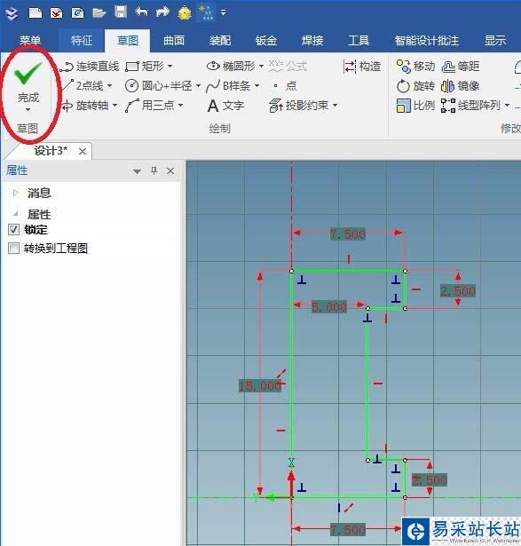 3)點擊“智能尺寸”,標注尺寸,可能還需要配合約束,