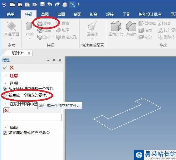 3)屬性欄中的選項,我們點擊“新生成一個獨立的零件”。