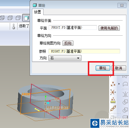 5)點擊“草繪”對話框下方的“草繪”按鈕。