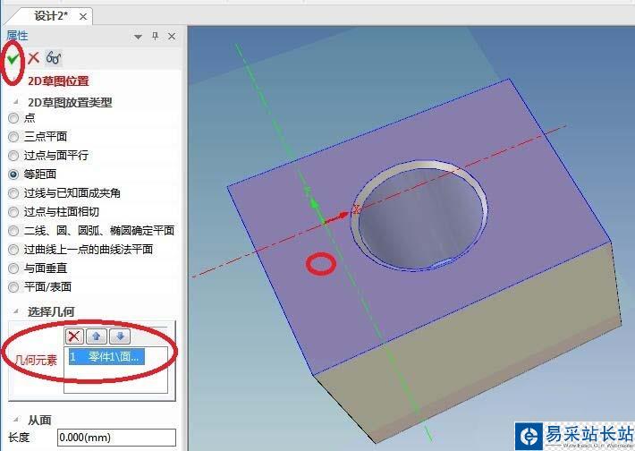 7、如下圖所示,“幾何元素”一欄,我們將要點擊實體的上表面。
