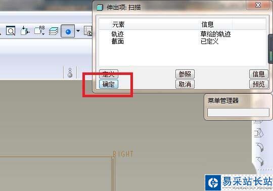 3、如下圖所示,菜單管理器中點(diǎn)擊“草繪軌跡”。