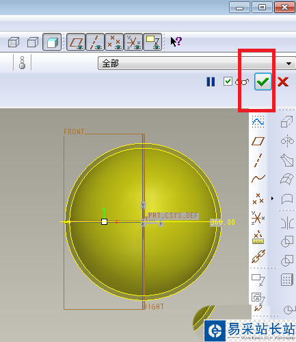 4、如下圖所示,退出草繪之后,看著預覽效果,點軟件右上角控制欄中的“√”,完成并結束本次操作。