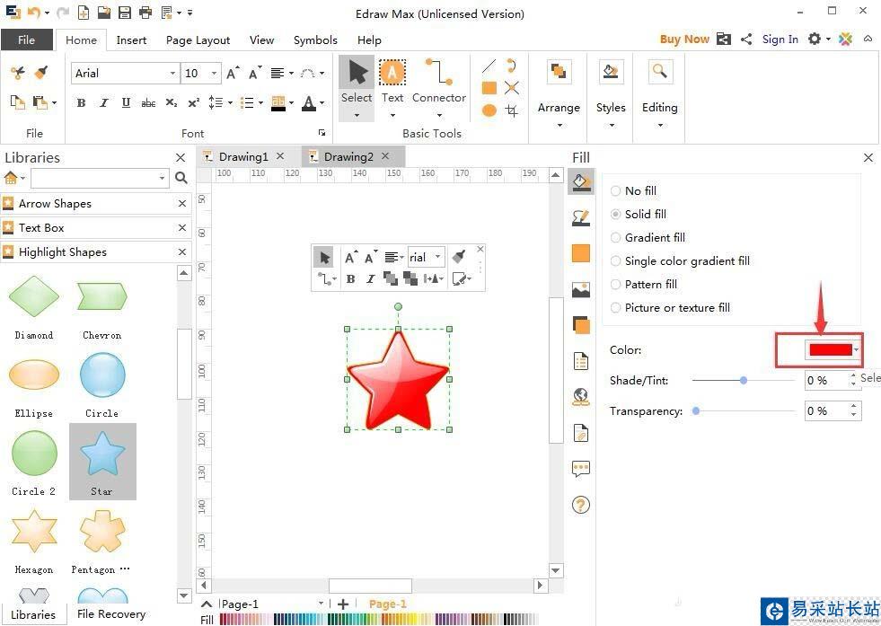 Edraw Max中想要?jiǎng)?chuàng)建紅色的五角星,該怎么創(chuàng)建呢?下面我們就來(lái)看看Edraw Max創(chuàng)建五角星的教程。