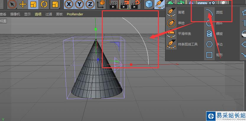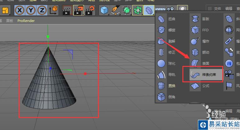 1、先建立圓錐體,然后再選擇樣條約束