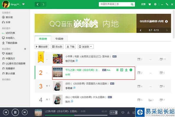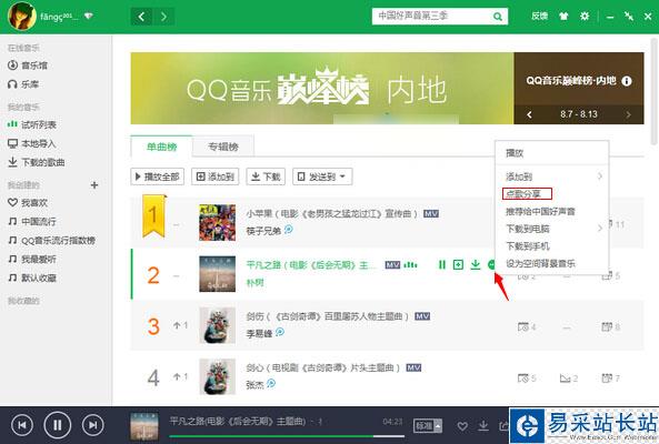 1.下載qq音樂pc版,安裝完成后找到要分享的歌曲,小編同樣以平凡之路這首歌作為示范。