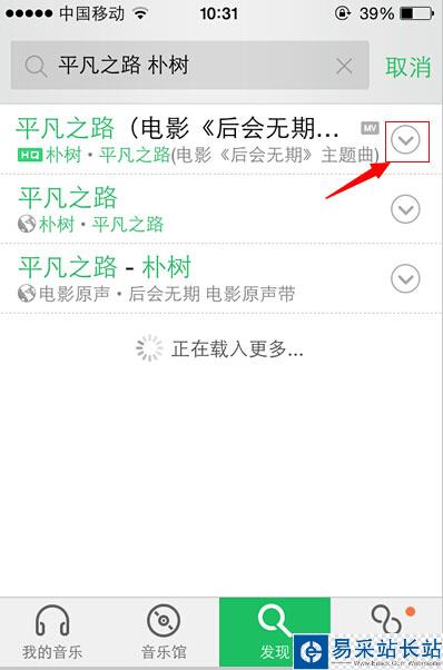 2.歌曲搜索完成后,直接點(diǎn)右向下的箭頭