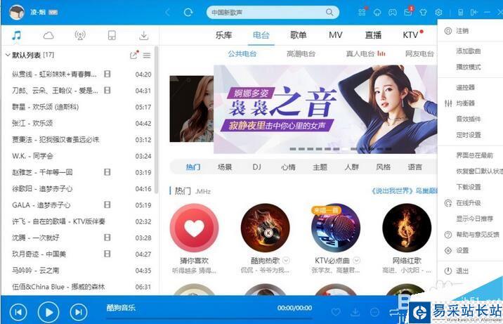 打開酷狗音樂,點擊右上角的【主菜單】