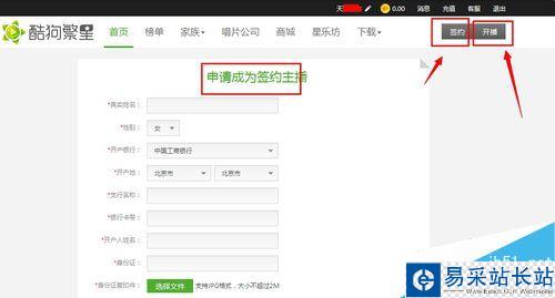 在打開在頁面中,填寫資料申請(qǐng)簽約,簽約后就可以開播了: