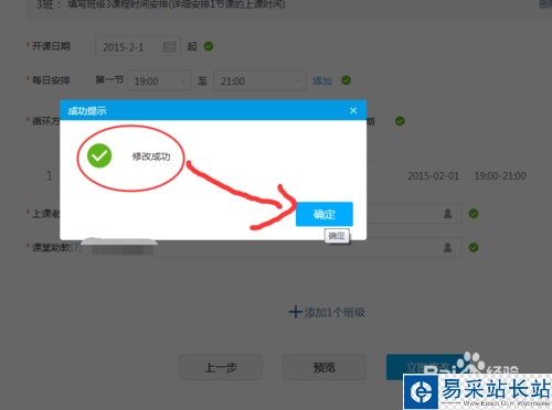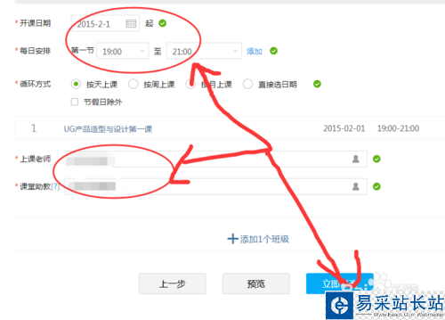 5、為新的班級填寫上課日期、時長、上課老師、助教等信息;在以上填寫完成后,點立即修改;