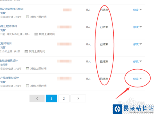 1、在課堂的后臺,可以查看到所有已發布的課程,其包括結束的與沒有結束的;找到要重新開啟的課程,然后點修改;