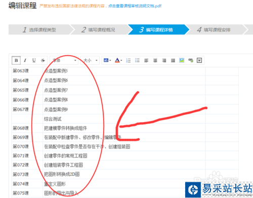 3、編寫課程詳情,如有新的說明文字,可以添加,沒有直接點一步;