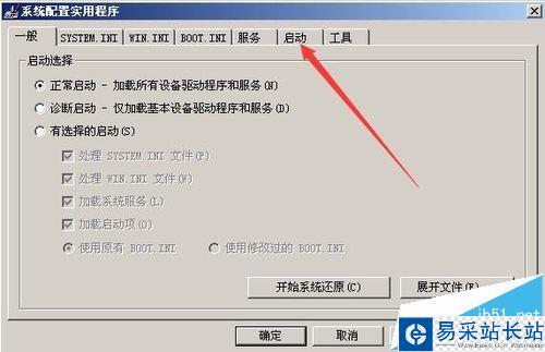 5、在打開的系統配置實用程序窗口中,點擊上面的“啟動”標簽