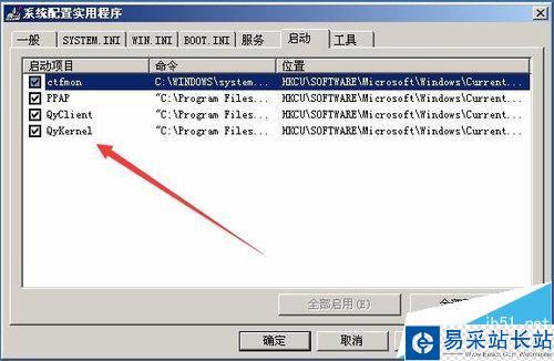 6、這時可以看到愛奇藝客戶端的啟動鏈接,把其前面的對勾去掉