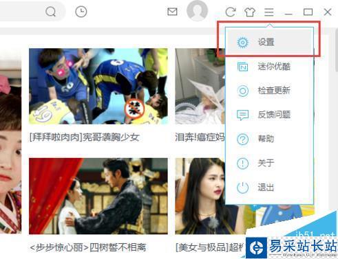 2、在打開的優酷視頻窗口,點擊窗口右上角的“三橫-菜單”選項圖標按鈕。如圖所示;