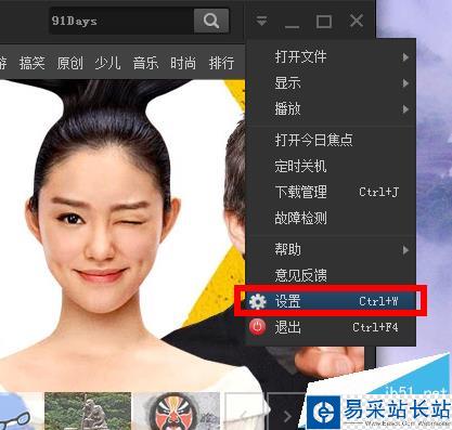 3、找到“設置”選項,單擊。也可直接使用快捷鍵Ctrl+W。