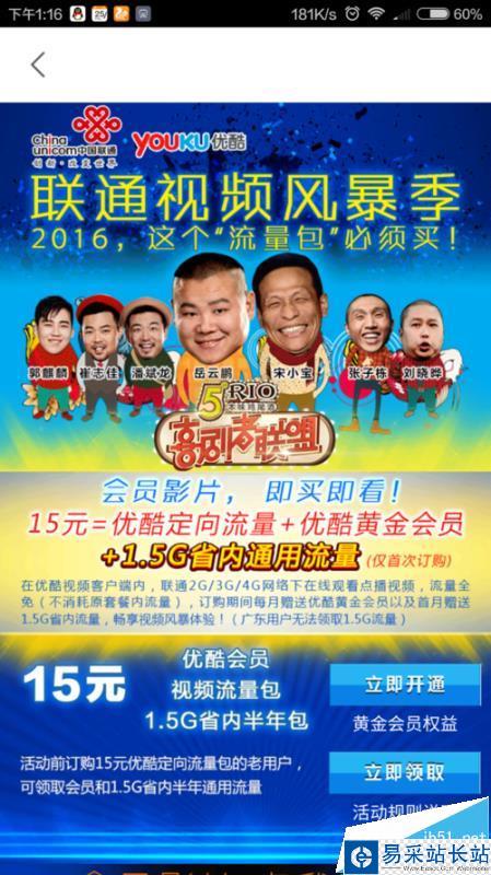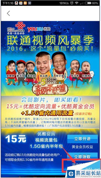優酷在今年暑假推出了一個15元聯通套餐,即15元包(全省流量半年包1.5G+優酷30天定向流量+優酷會員30天),如果是原價的話需要六七十元。很多小伙伴都知道,但是很多人反映,定向流量不能用。那小編今天告訴大家最正確的步驟。