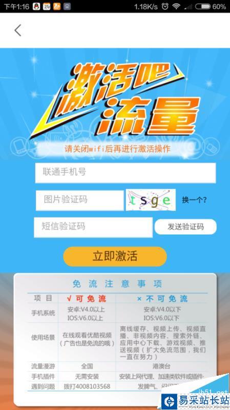 5、填上手機號驗證碼后,立即激活。然后就可以了,我們在看免流視頻時候,視頻右下角會有個-聯通包月-字樣。恭喜你成功了。