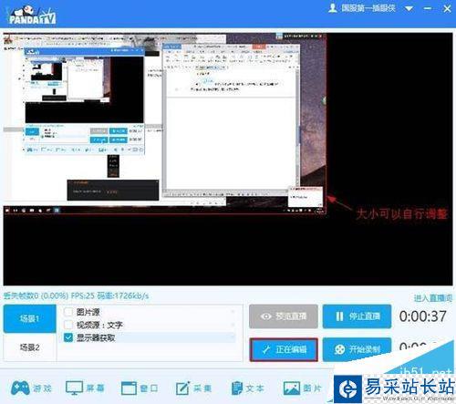 點擊“文本”,可以自行添加文本。添加完文本之后,點擊“正在編輯”可以自行調整文本在直播頁面的位置。