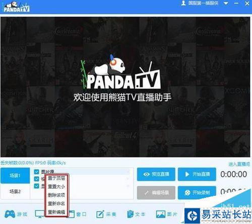 助手中有兩個場景選擇,主播可以自行添加不同場景中相關視頻、攝像頭、文字、圖片,并在“正在編輯”中編輯相關內容的大小和位置場景中,鼠標右鍵點擊直播源,會出現下圖中的菜單。主播可以選取并編輯