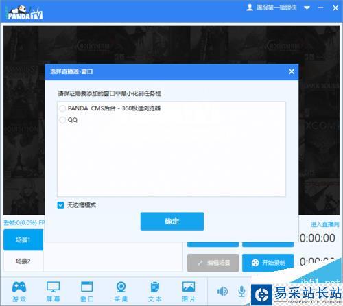 點擊“窗口”,選擇其中一個窗口,將下面的“無邊框模式”打上√,然后點擊確定即可