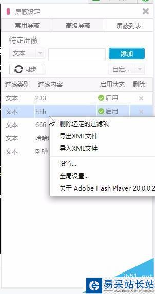 4、在屏蔽列表,右鍵-導(dǎo)出xml文件,那個文件就是你所需要的屏蔽列表啦