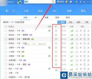 2.搜索想唱的歌曲,注意要有MTV圖標(biāo)的才有MTV視頻