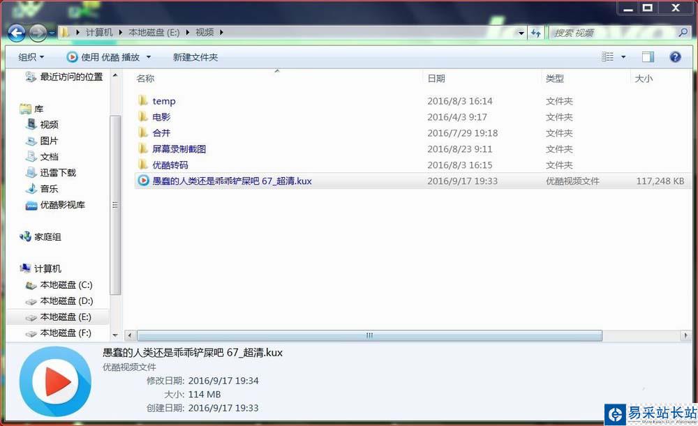 2、下載完成,打開下載目錄(見圖),得到視頻文件,kux格式,只能用優(yōu)酷客戶端播放。