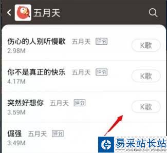 找到喜歡的歌以後點擊【K歌】