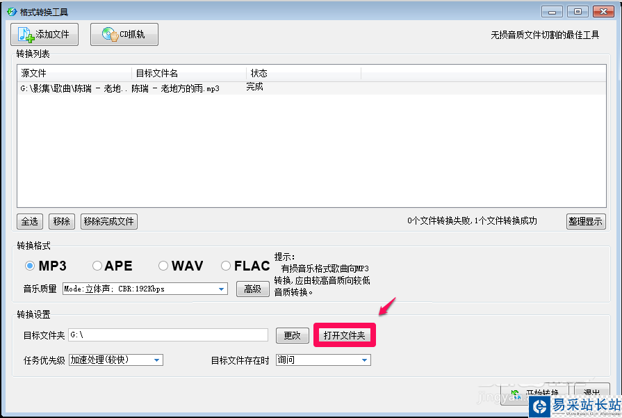 8、轉(zhuǎn)換完成,我們點擊:打開文件夾,查看轉(zhuǎn)換的歌曲;
