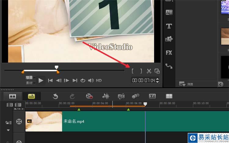 2、在插入視屏之后我們就可以對視屏進行剪輯了。在軟件左上角的視屏預覽區域。選擇我們需要進行截取的片段,拖動進度條上方的游標選擇剪輯區域。
