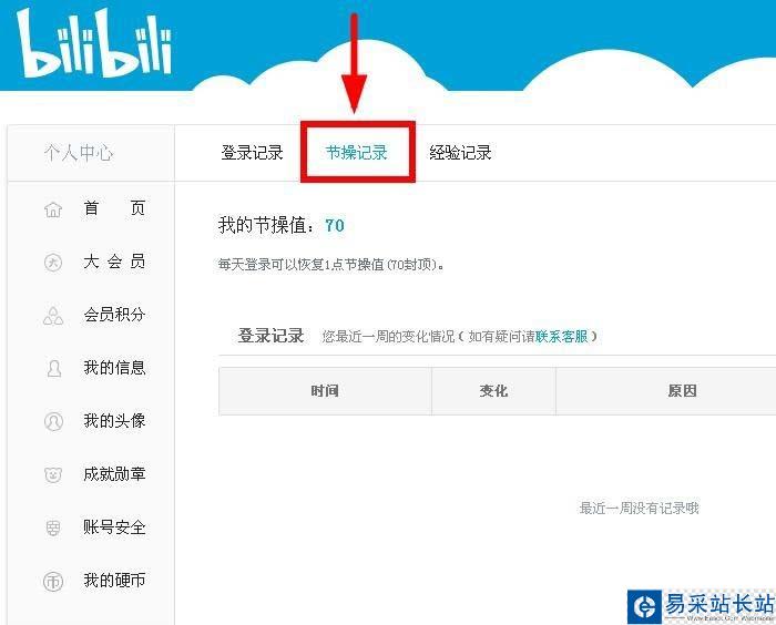 3、進(jìn)入個(gè)人中心界面,點(diǎn)擊查看節(jié)操記錄。