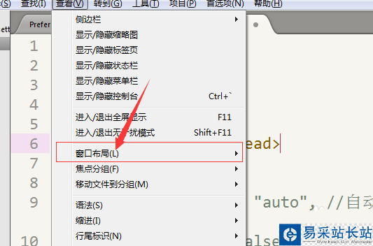 3、進行點擊了查看的選型菜單之后,彈出了下拉菜單中選中為“窗口布局”選項。