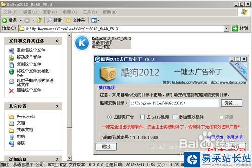打開酷狗2012去廣告補丁程序,點擊扏行.