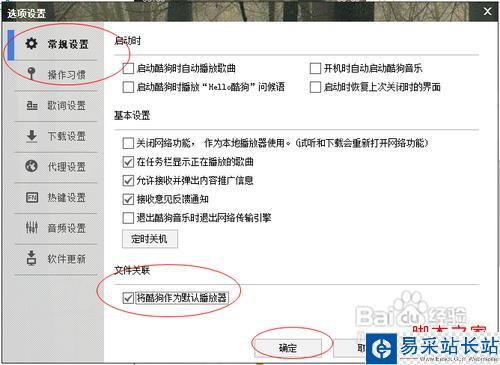 然后在常規(guī)選項(xiàng)卡中勾選使用酷狗瀏覽器作為默認(rèn)播放器的選項(xiàng),最后點(diǎn)擊確定按鈕即可,如圖所示: