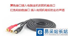2.將音頻線的兩端分別接入電視機和電腦