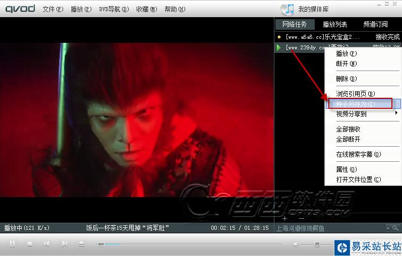 這個時候,我們右鍵單擊任務欄中的電影名,選擇種子另存為。